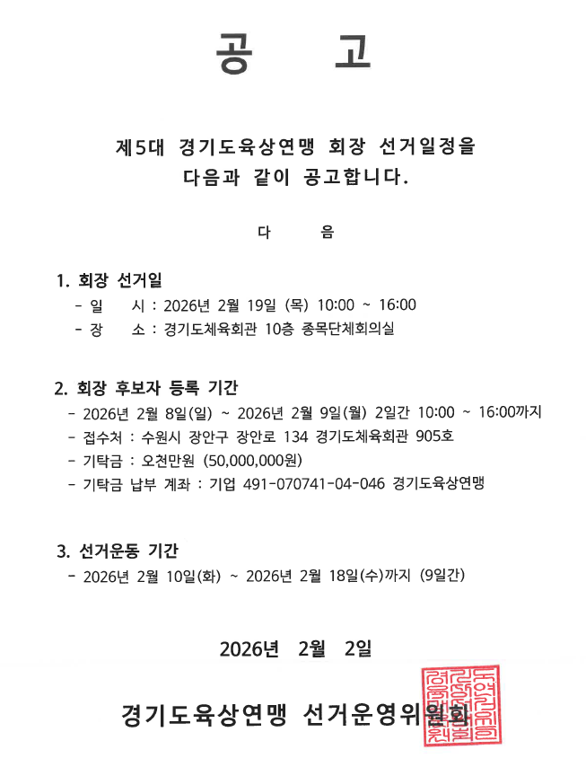 제5대 경기도육상연맹 회장선거일 공고 및 임원의 결격사유 안내