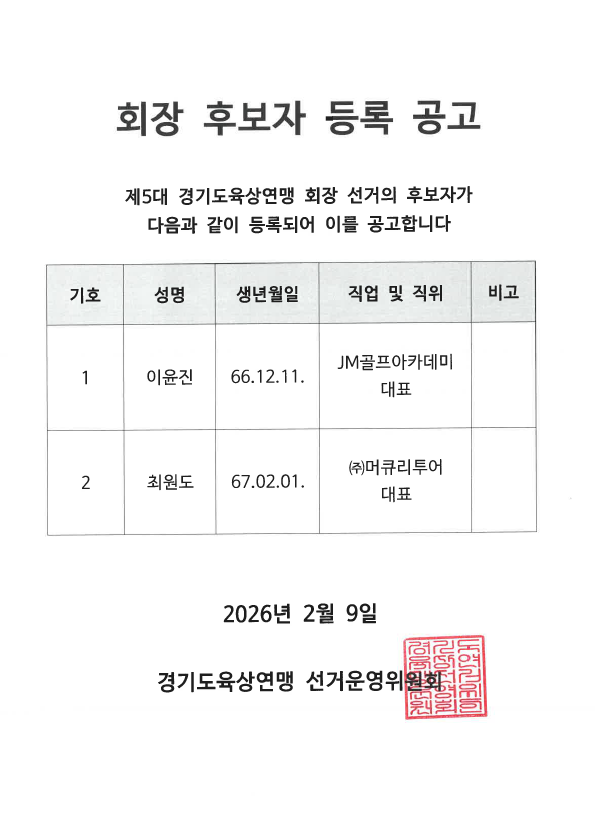 회장후보자등록 공고