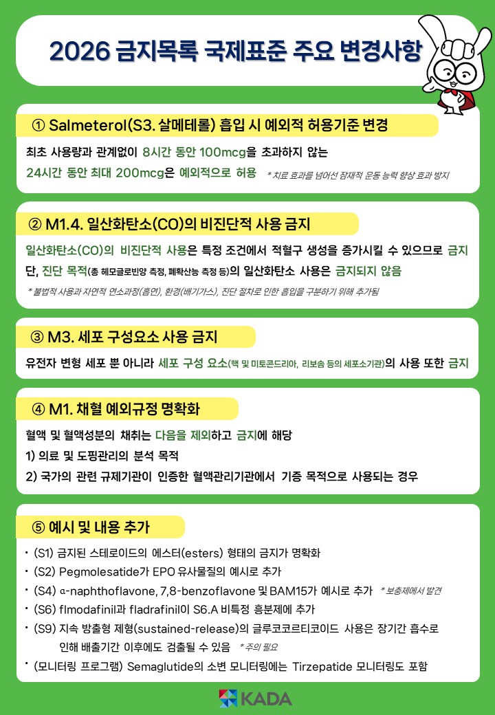 세계도핑방지규약 2026년 금지목록 국제표준 주요 변경사항 안내